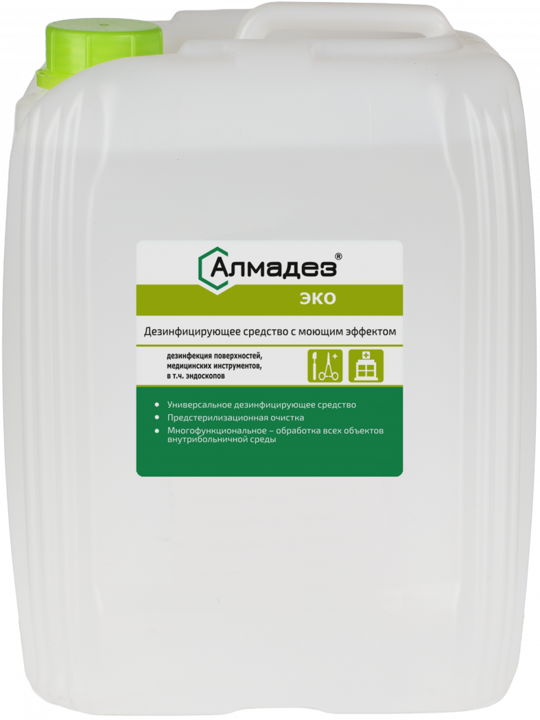 Дезинфицирующее средство «Алмадез-эко» представляет собой прозрачную жидкость от бесцветного до светло желтого цвета со слабым специфическим запахом или запахом применяемой отдушки.
